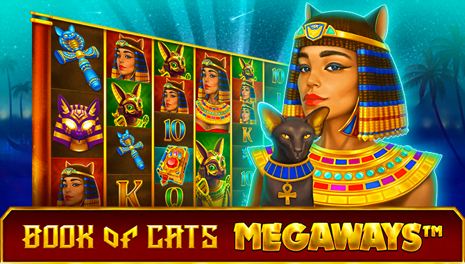 According to ancient Egyptian beliefs, the goddess Bastet brings cheer and fun. In our slot, she also rewards generous bonuses. Apart from the traditional free spins, there is a Book symbol that serves as a Wild or Scatter, and during free spins, it gets a random multiplier applied to the total win of a spin. There is also an Expanding symbol paying even on non-adjacent reels. Unlike the previous Book of Cats slot, the MEGAWAYS™ mechanics here gives more options to win, with a maximum of 117 649 possible ways.